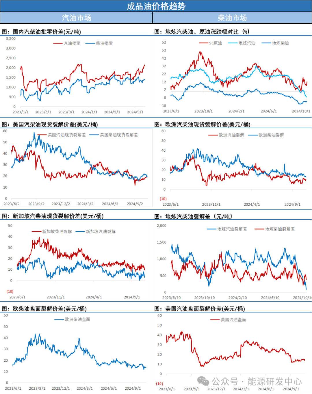 【2】睿咨得在一份跟踪中国炼油市场报告中称在旅行和建筑活动的推动下,炼油厂开工量在 8 月份触及 22 个月低点后,9 月份环比反弹环比增长 38 万桶/日,较预期温和,同比下降78 万桶/日,主要是由于汽油需求持续疲软和炼油厂利润率收窄。由于电动汽车(EV)普及速度加快,夏季旅游旺季未能支撑汽油需求,因为汽油裂解疲软给今年炼油厂总利润率带来压力。然而,馏分油需求开始显示出复苏的迹象,九月和十月传统上是季节性需求高峰。在季节性馏分油需求增长的推动下,9 月份独立炼厂的运行有所反弹,但与往年同月相比仍处于较低水平。预计中国炼油厂运行自10 月份起将保持相对平稳,但存在下行风险。裕龙石化的两个日产 20 万桶原油蒸馏装置 (CDU) 中的第一套于 9 月 25日开始运营,目前利用率已升至 70% 至 80%,增加了中国自 10 月份以来的原油吞吐量。