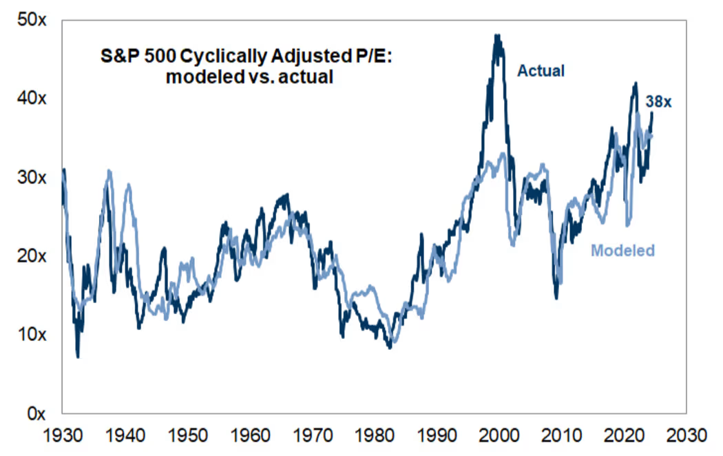 高盛发现,目前标普500指数经周期因素调整后的市盈率已达38倍,距离互联网泡沫时期的峰值不远。